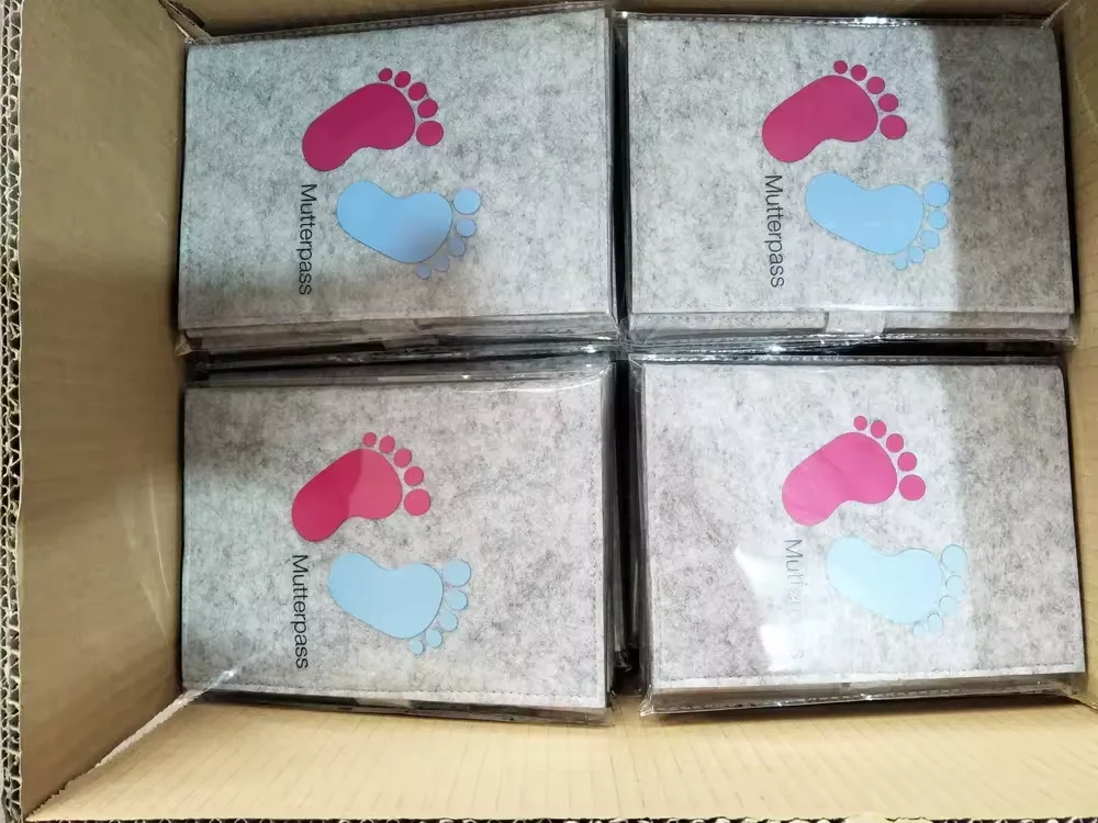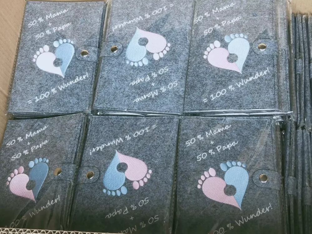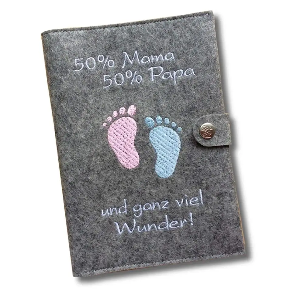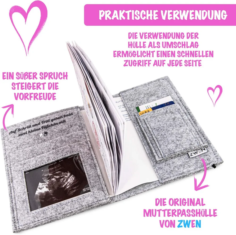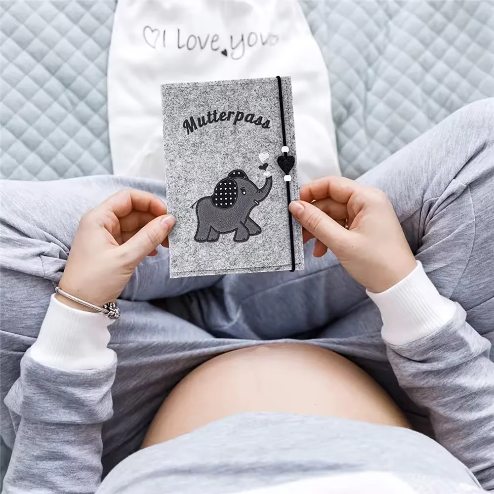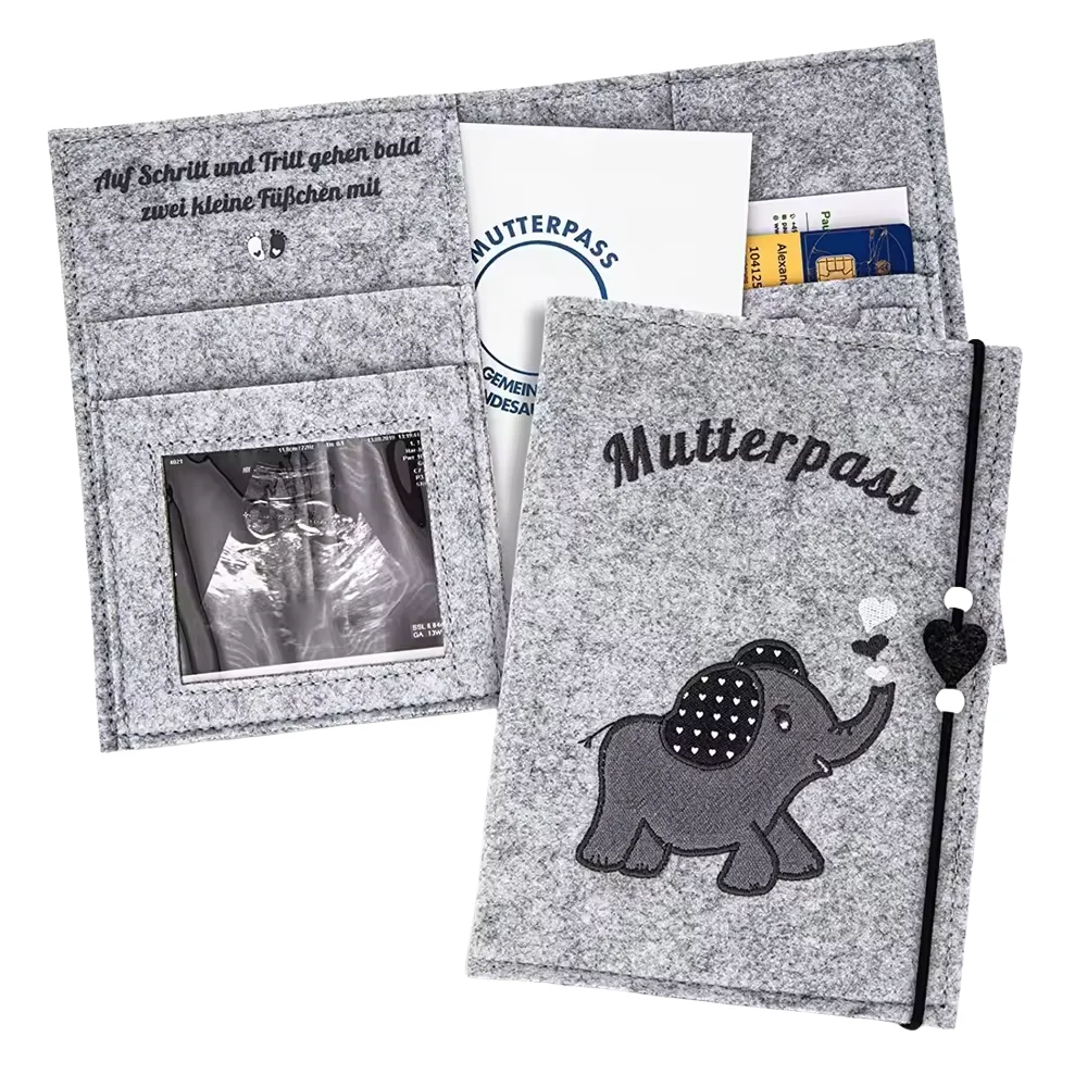 Capa de registro de maternidade de feltro cinza personalizada com design de elefante, organizador de mutterpass para fotos ultrassônicas de mães alemãs