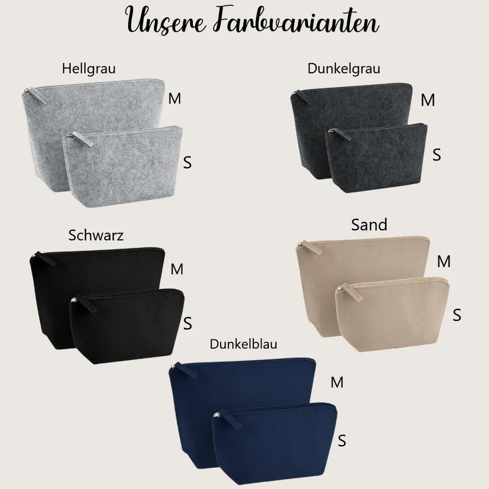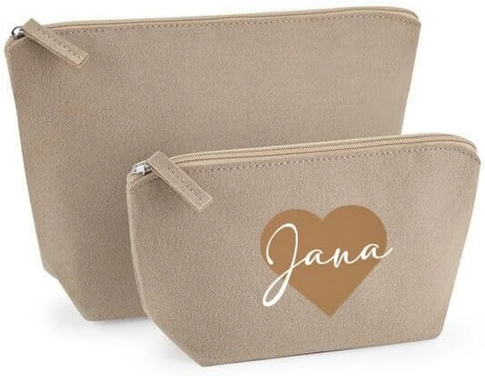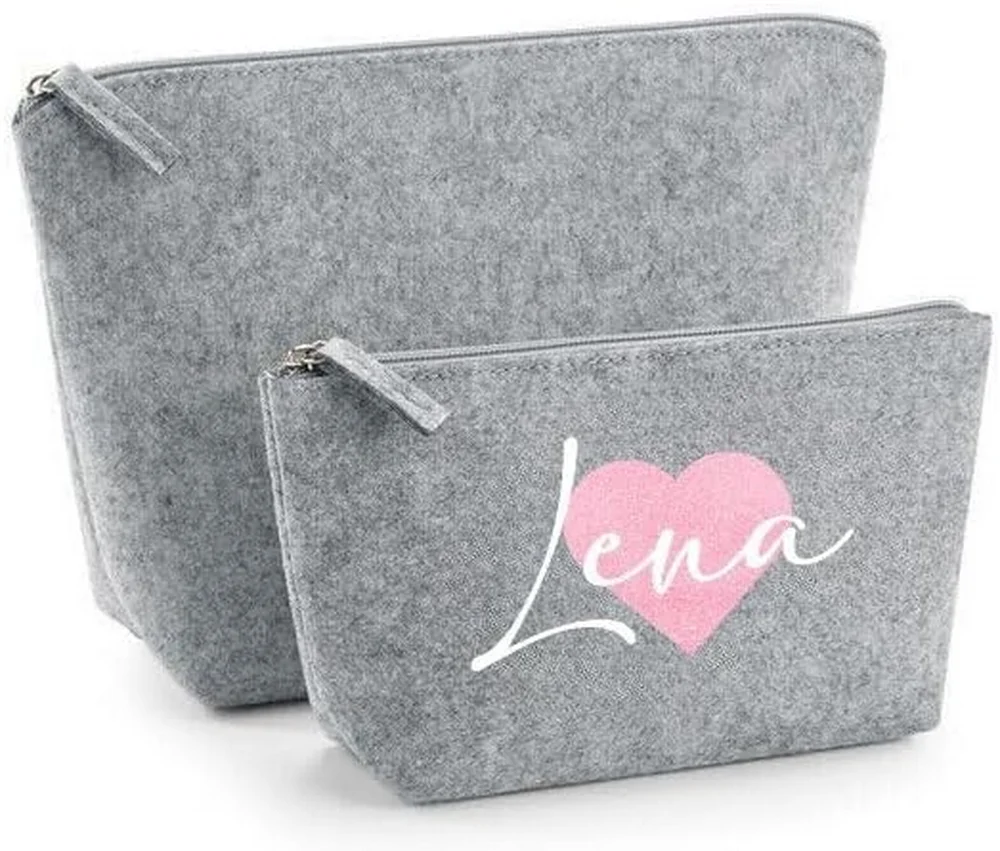 Item | Bolsa de cosméticos de feltro de maquiagem unissex personalizada com 5 cores e nome e coração para mulheres, presente ideal | ||||||