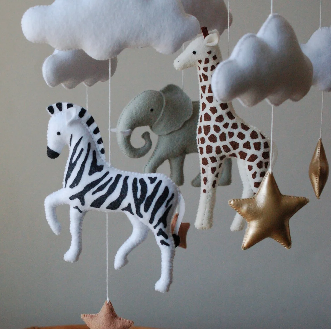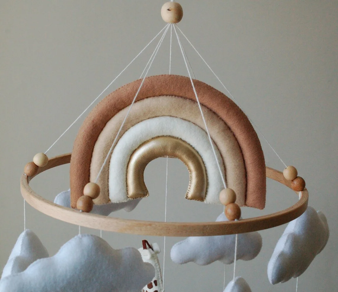 neutral babymobile nursery decor custom educational toys animals wool felt safari baby mobile for crib with rainbow